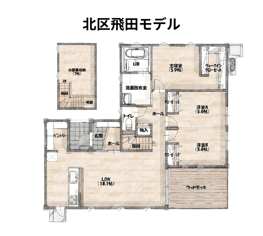 北区飛田モデル 平面図(27坪3LDK+小屋裏)