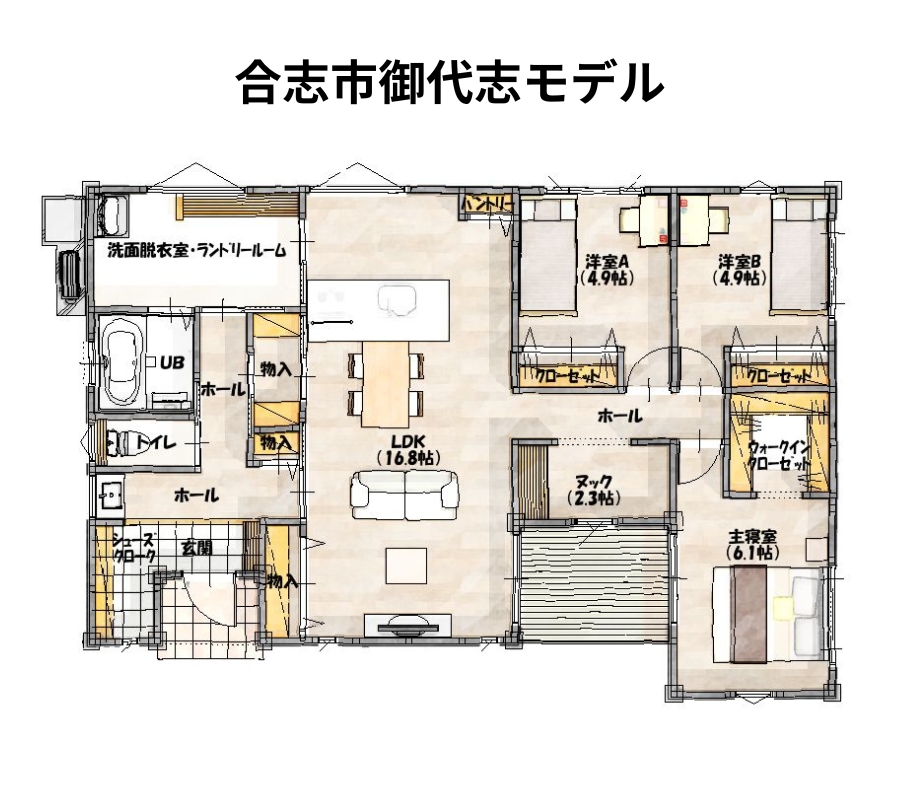 合志市御代志モデル 平面図(28坪3LDK+ヌック)