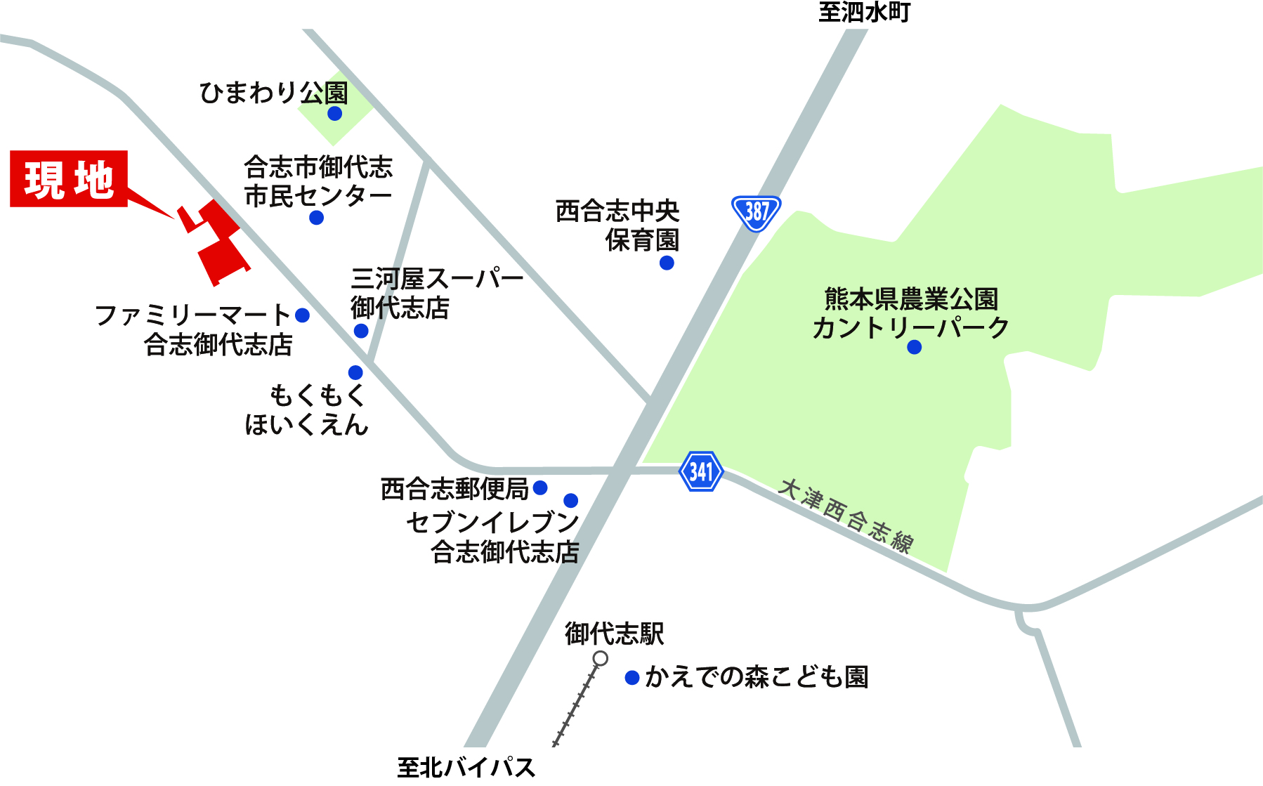 合志市御代志モデル 現地案内図(28坪3LDK+ヌック)