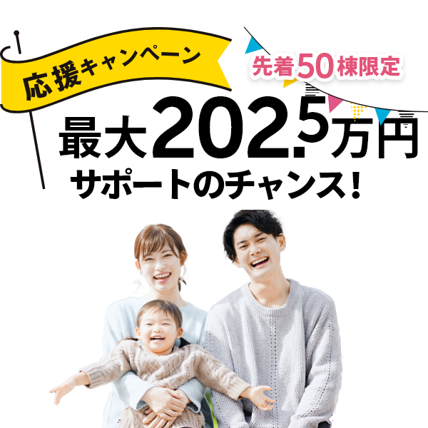 2025年はマイホームの夢を叶えるチャンスの年!先着50棟限定最大202.5万円のサポートで家づくりを応援します!!子育てグリーン住宅支援事業補助金にプラス、ジャストホームオリジナル補助金も!いまだからこそ利用できる特別な支援を活用し、理想のくらしをスタートしましょう!
